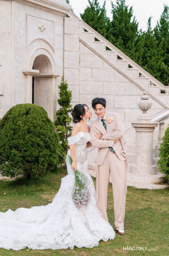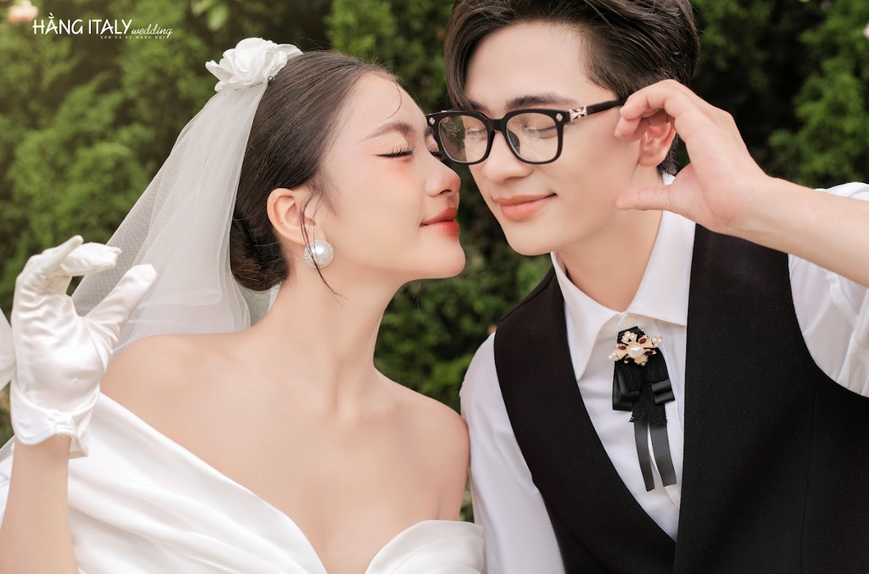 Chú rể cũng được chăm chút không kém, với kiểu tóc vuốt nhẹ. Tạo cảm giác vừa lịch lãm vừa trẻ trung, rất hợp với phong cách hiện đại của bộ ảnh. Hằng Italy Studio không chỉ làm đẹp cho cặp đôi. Mà còn khéo léo làm nổi bật thần thái của họ. Từ ánh mắt rạng rỡ của cô dâu đến nụ cười ấm áp của chú rể. Tất cả đều được ghi lại một cách tự nhiên và đầy cảm xúc.