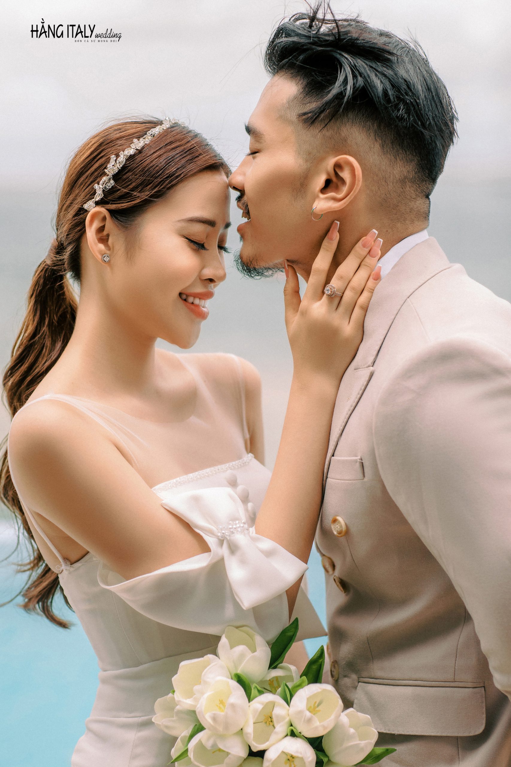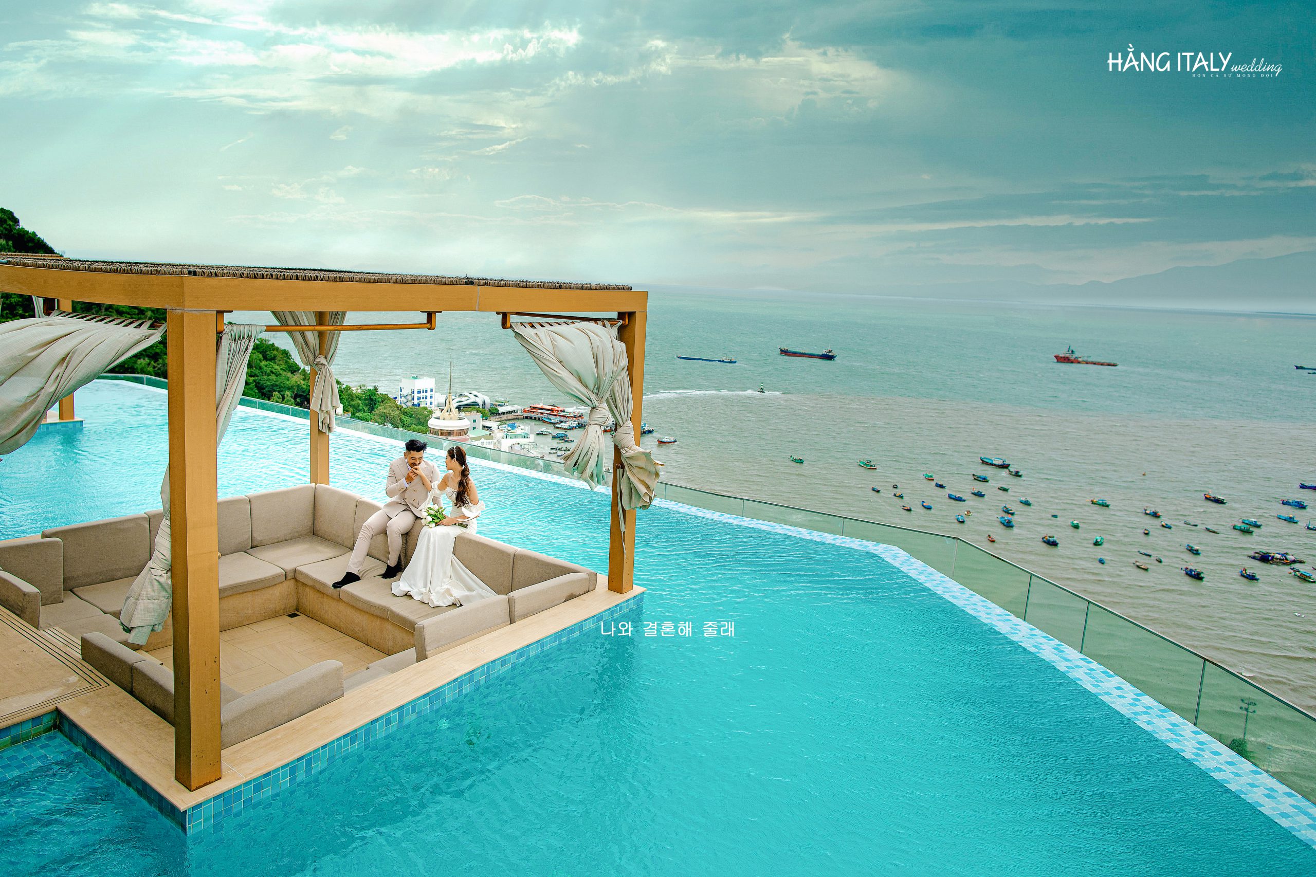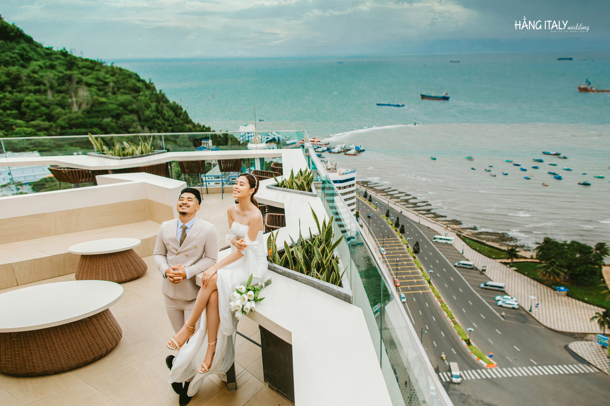 Một khung cảnh lãng mạn, tiếng sóng vỗ êm ái, tay đan tay trao nhau một nụ hôn sẽ là bối cảnh hoàn hảo cho bộ ảnh cưới cả đời.