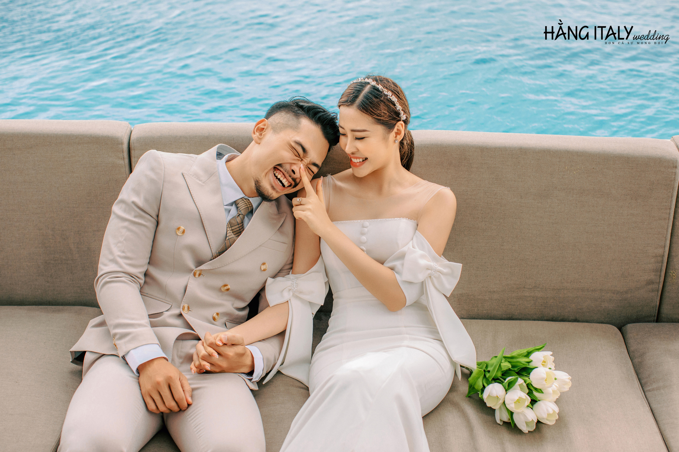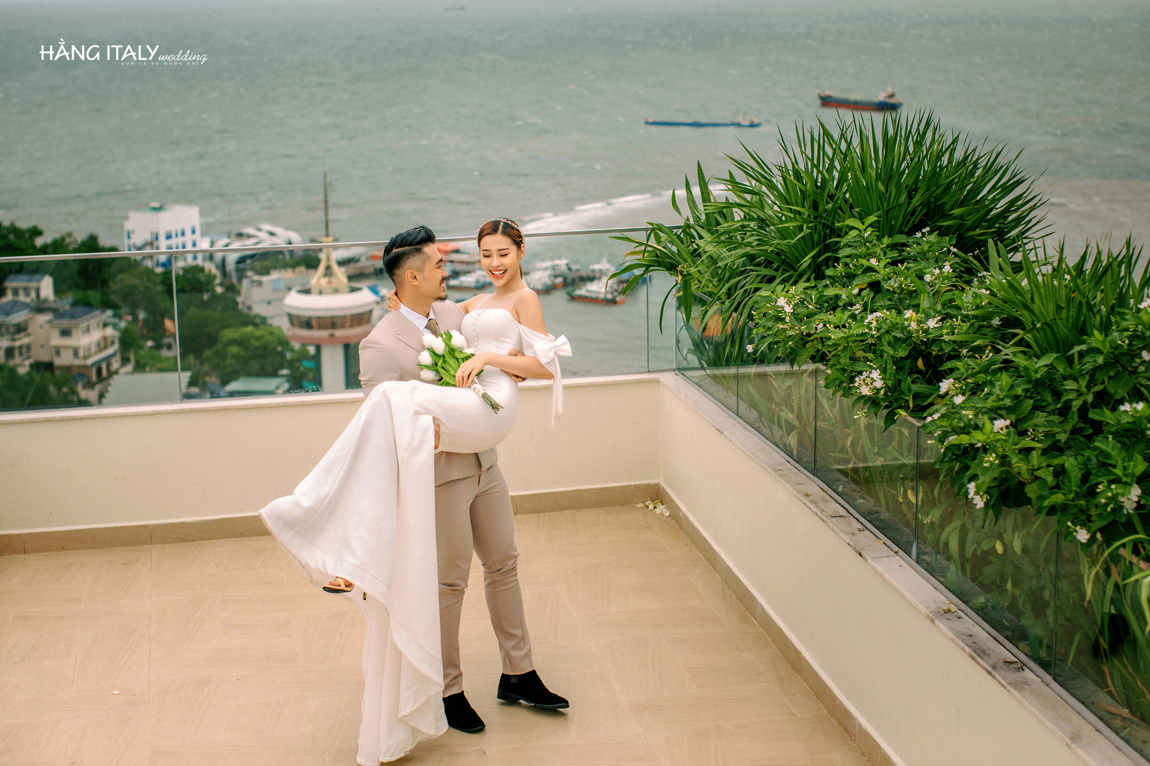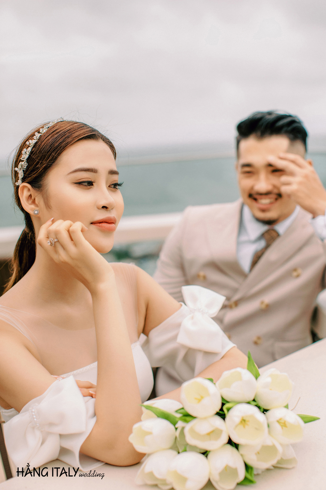 Một khung cảnh lãng mạn, tiếng sóng vỗ êm ái, tay đan tay trao nhau một nụ hôn sẽ là bối cảnh hoàn hảo cho bộ ảnh cưới cả đời.